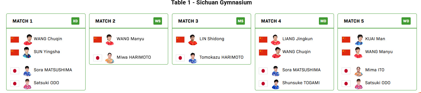 第一盘:王楚钦/孙颖莎vs松岛辉空/大藤沙月